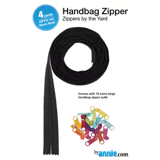 Zippers by the Yard contain 4 yards of zipper chain and 16 color-coordinated extra-large pulls.